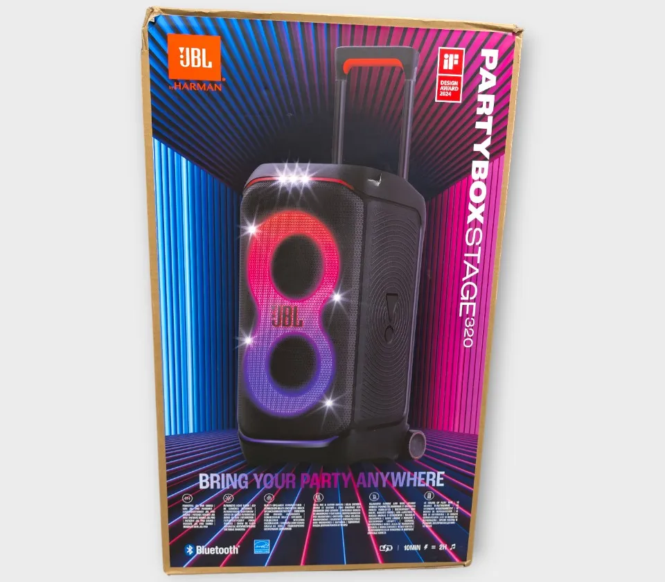 240 Watt, futuristisk ljusshow JBL Pro Sound, IPX4 18 timmars uppspelningstid