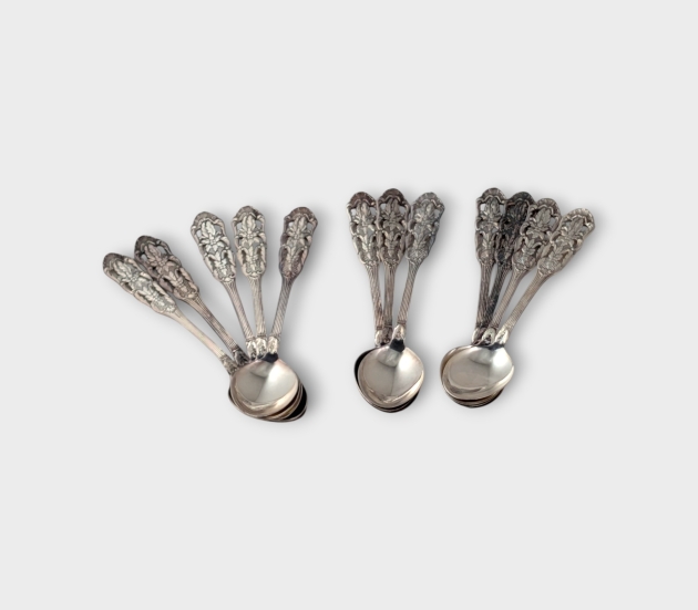12 st kaffeskedar i silver, "Rigoletto"