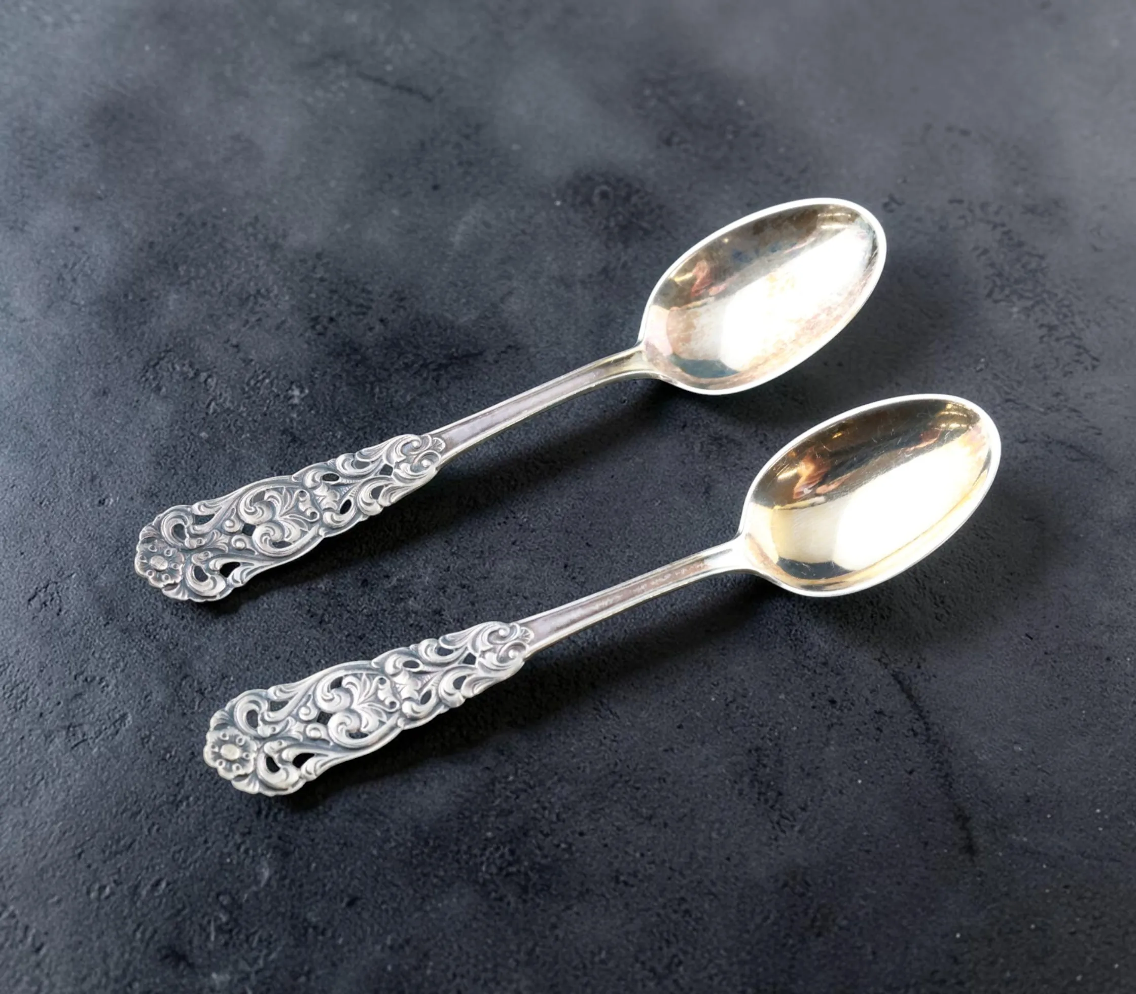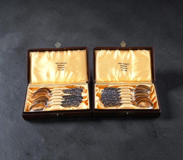 12 st kaffeskedar i silver, Norge, "Valdres"