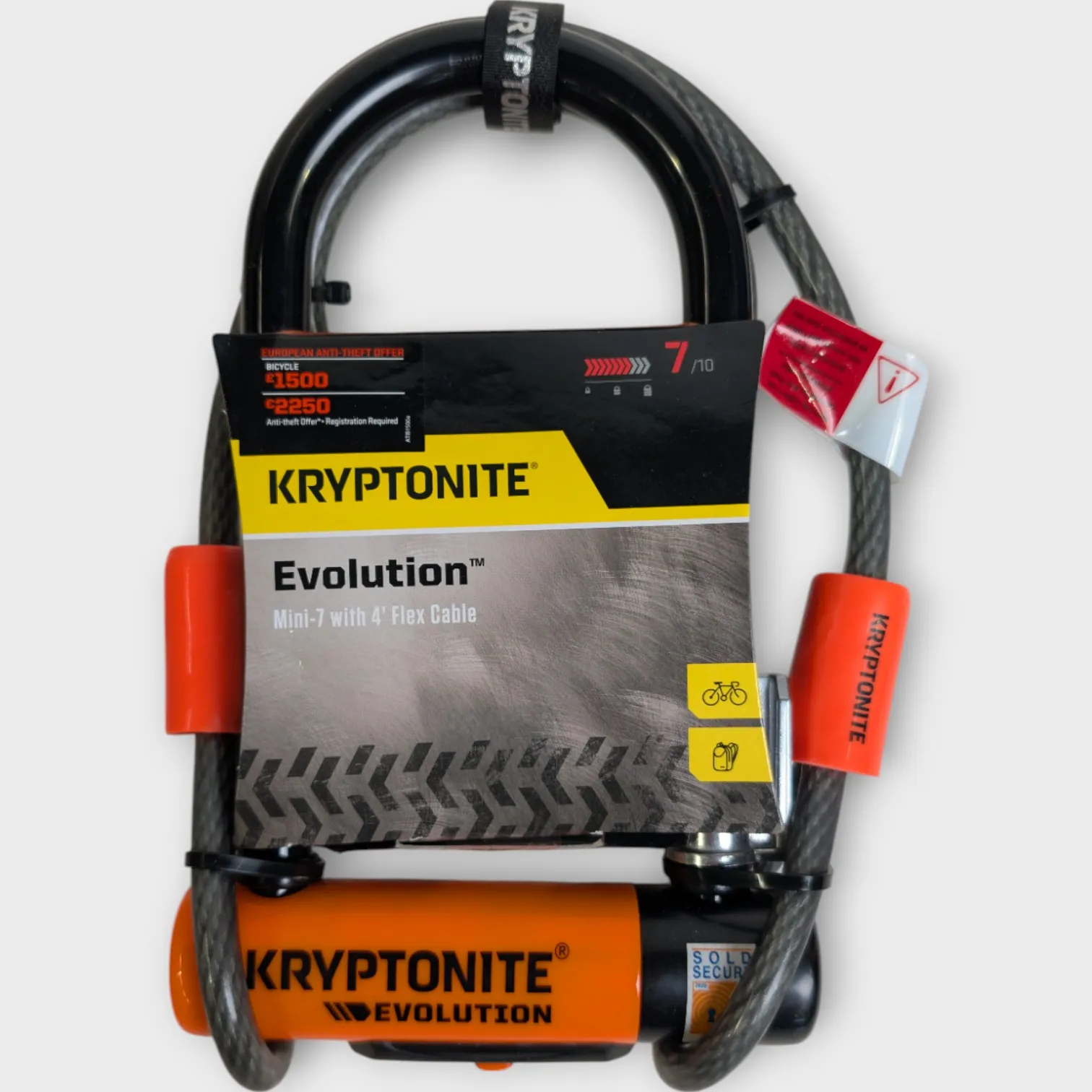 Kryptonite Bygellås Evolution Mini-7, 178 mm, inkl. fäste Låsvajer Flex, 120 cm, Ø 10 mm