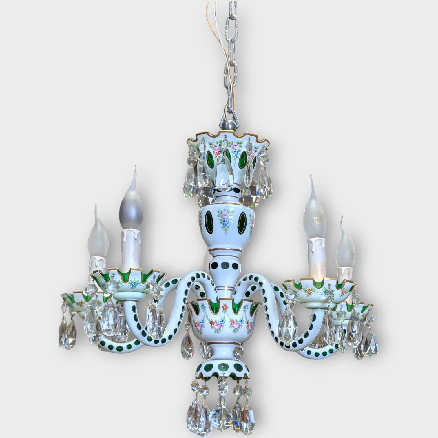 Venetiansk-stil, prosling och glas, 1900-talets mitt, 5 ljusarmar
