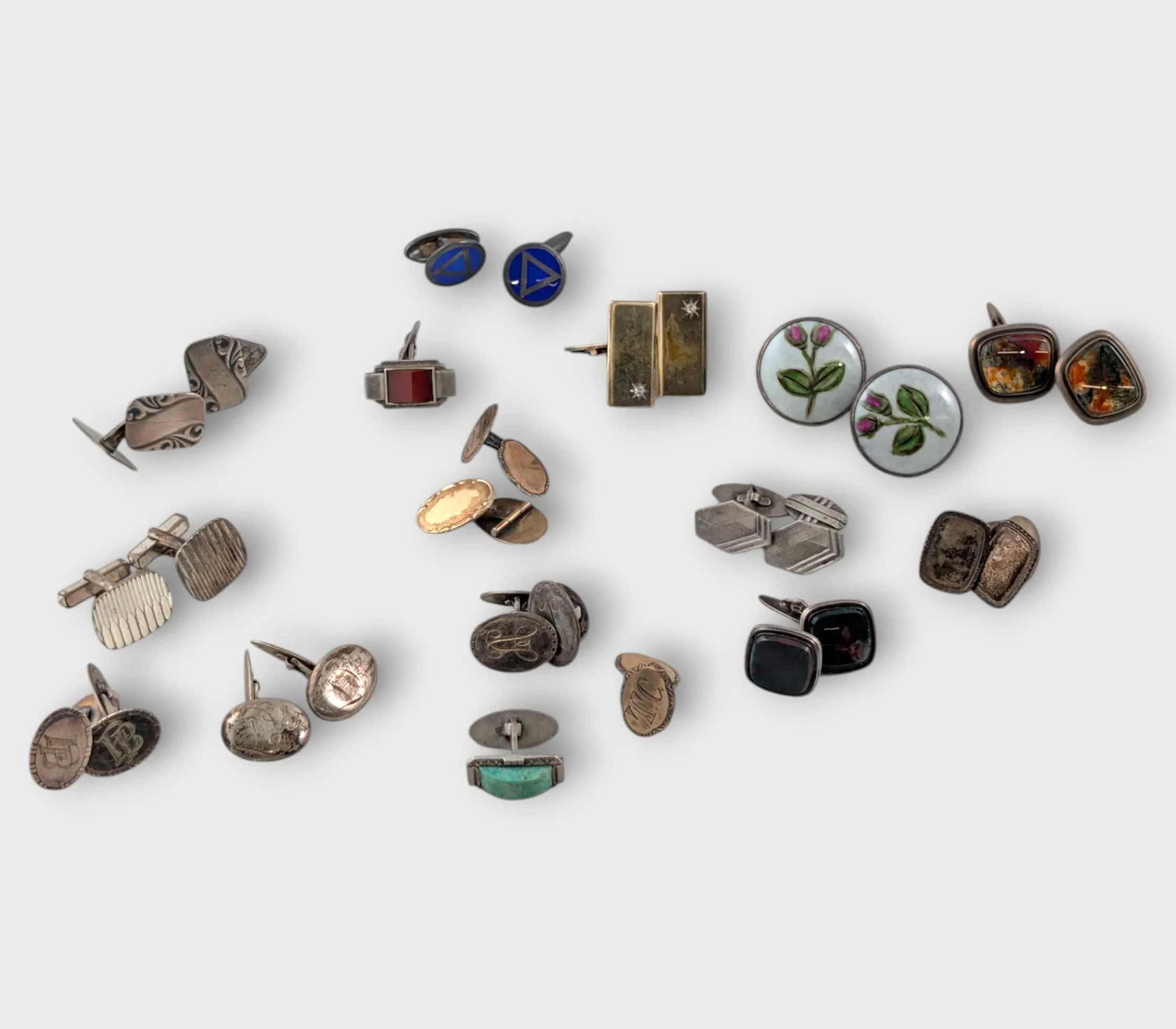 13 par manschettknappar i silver