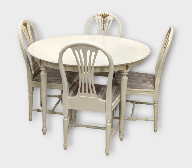 Bord och 4 stolar med 2 iläggsskivor, gustaviansk stil