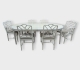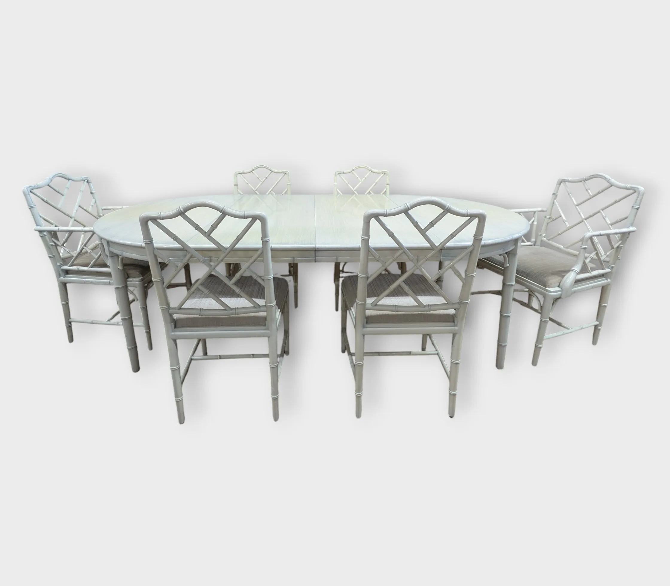 Matsalgrupp Sent 1900-tal, bord med 6 stolar varav två med armstöd, 2 iläggskivor