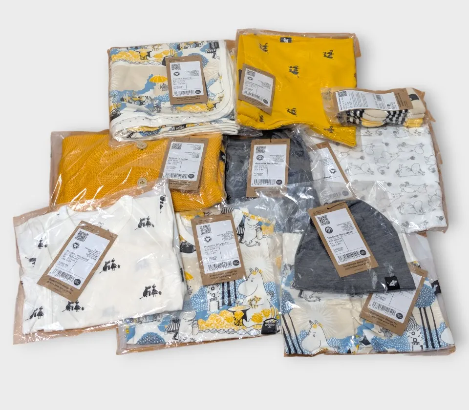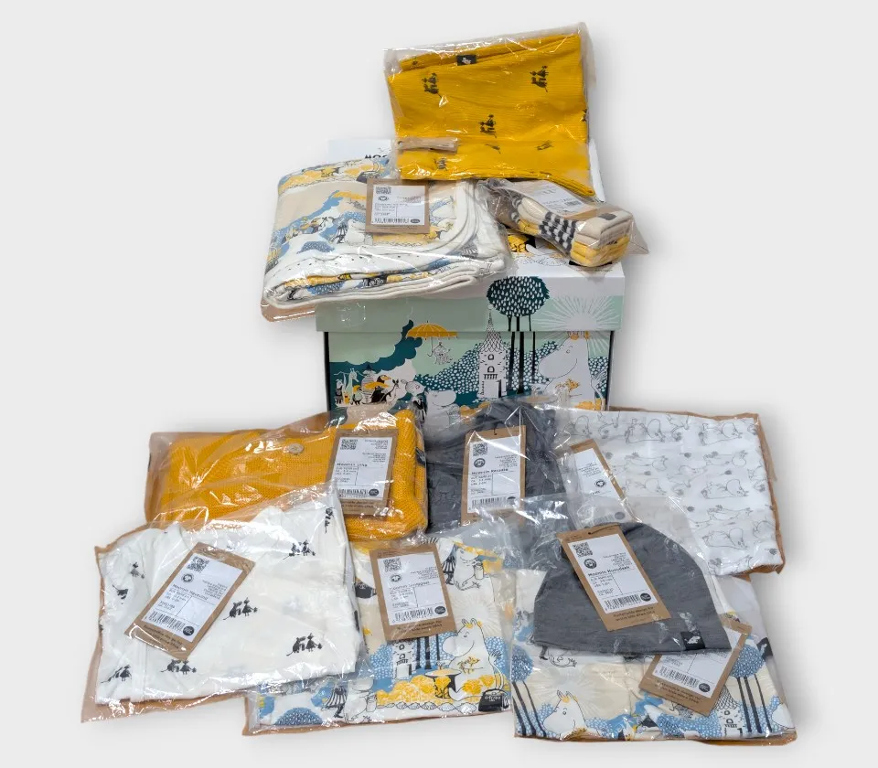 innehåller 10 könsneutrala produkter för din baby i en mycket fin nordisk design med Mumintrollen