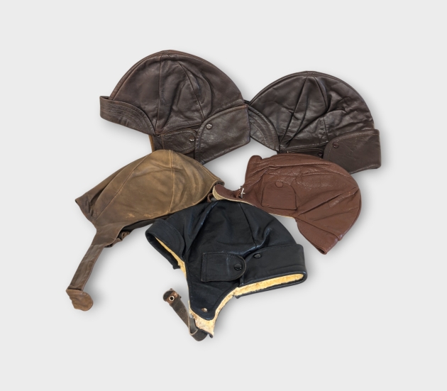 5 st Motorcykel/Flygarmössa, 1950-tal, skinn