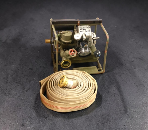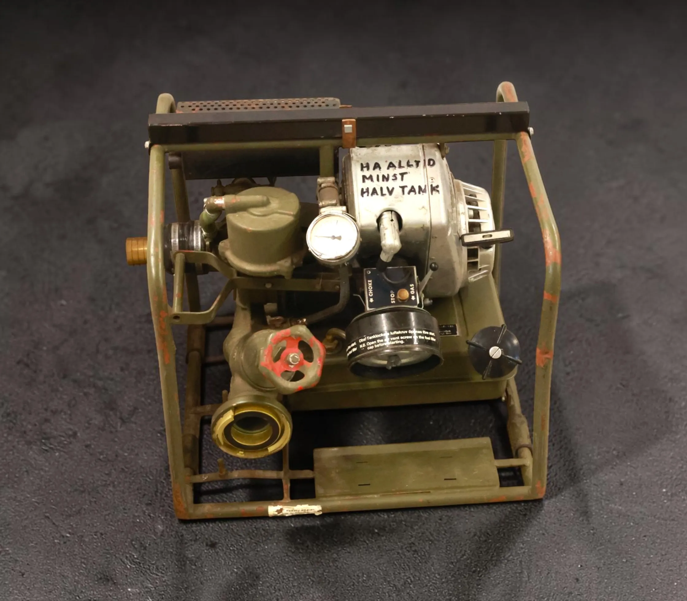 Motorspruta/pump A-200/70 från armén, Husqvarnamotor, Brandslang