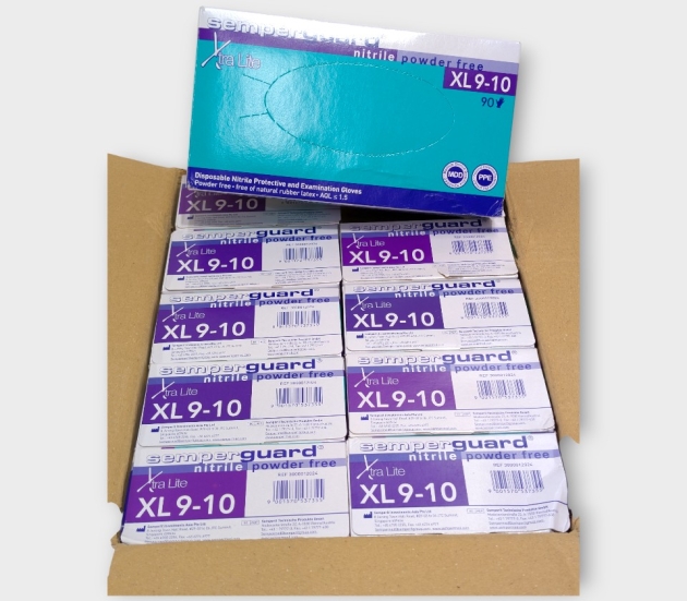 10 st paket med Nitril Blå XL 90st Engångshandske Semperguard