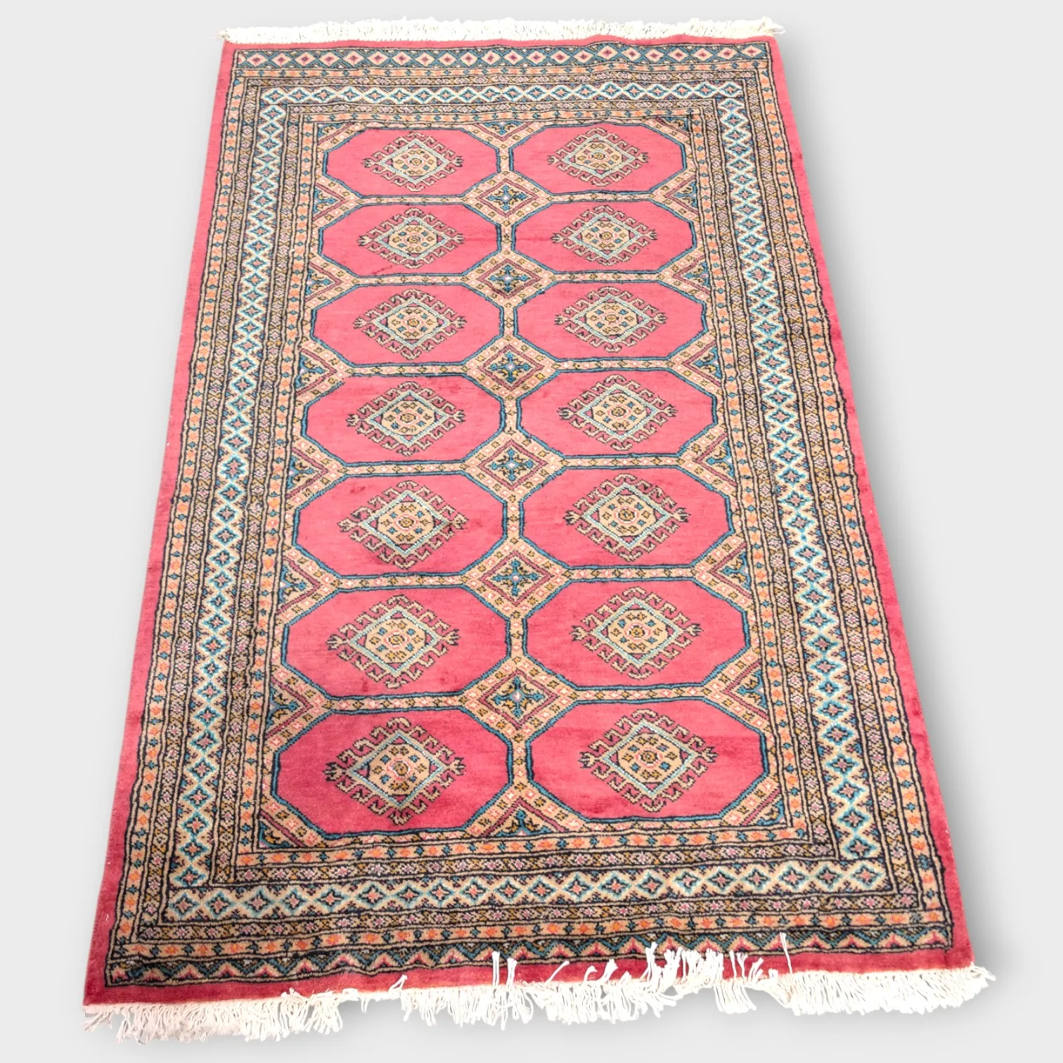 Handknuten, några fransar saknas annars nyskick