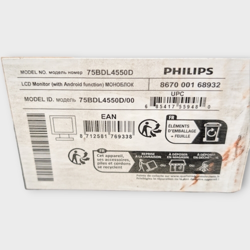 Philips 75BDL4550D/00 skyltställ Platt skärm för digital skyltning 189,2 cm (74.5") IPS Wi-Fi 500 cd/m² 4K Ultra HD Svart Android 8.0