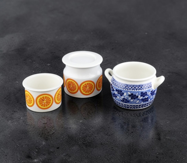 2 skålar och 1 marmeladburk (Litet kantnagg)