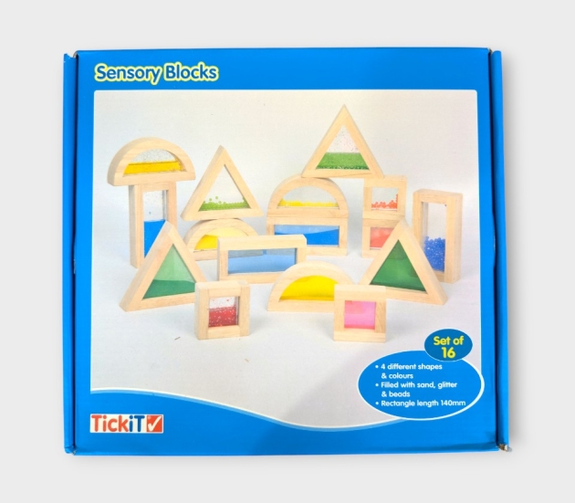 Sensoriska Block olika former, Rejäla klossar i lövträ som stimulerar barnens sinnen