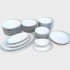 12 mattallrikar, 12 förrättstallrikar, 11 assietter, 12 djupa tallrikar, 8 uppläggningsfat och 1 såsskål