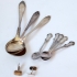5 kaffeskedar Mema, 3 matskedar, ett par maschettknappar 1930-1955