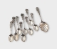 8 st Kaffeskedar, sockersked, ljusstake och glasburk med silverlock