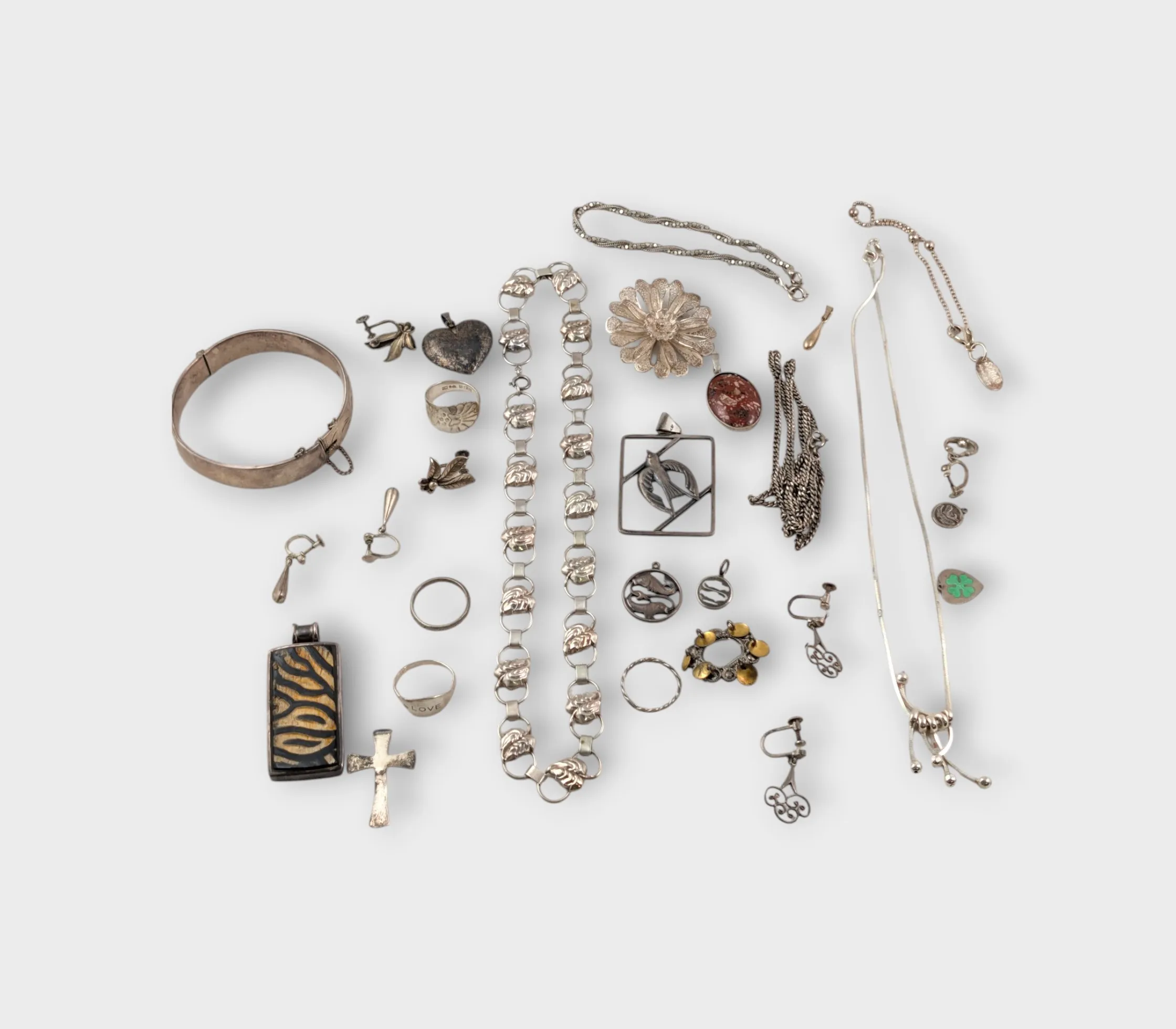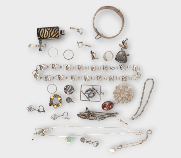 Blandade silversmycken (925), halsband, armband och hänge med mera