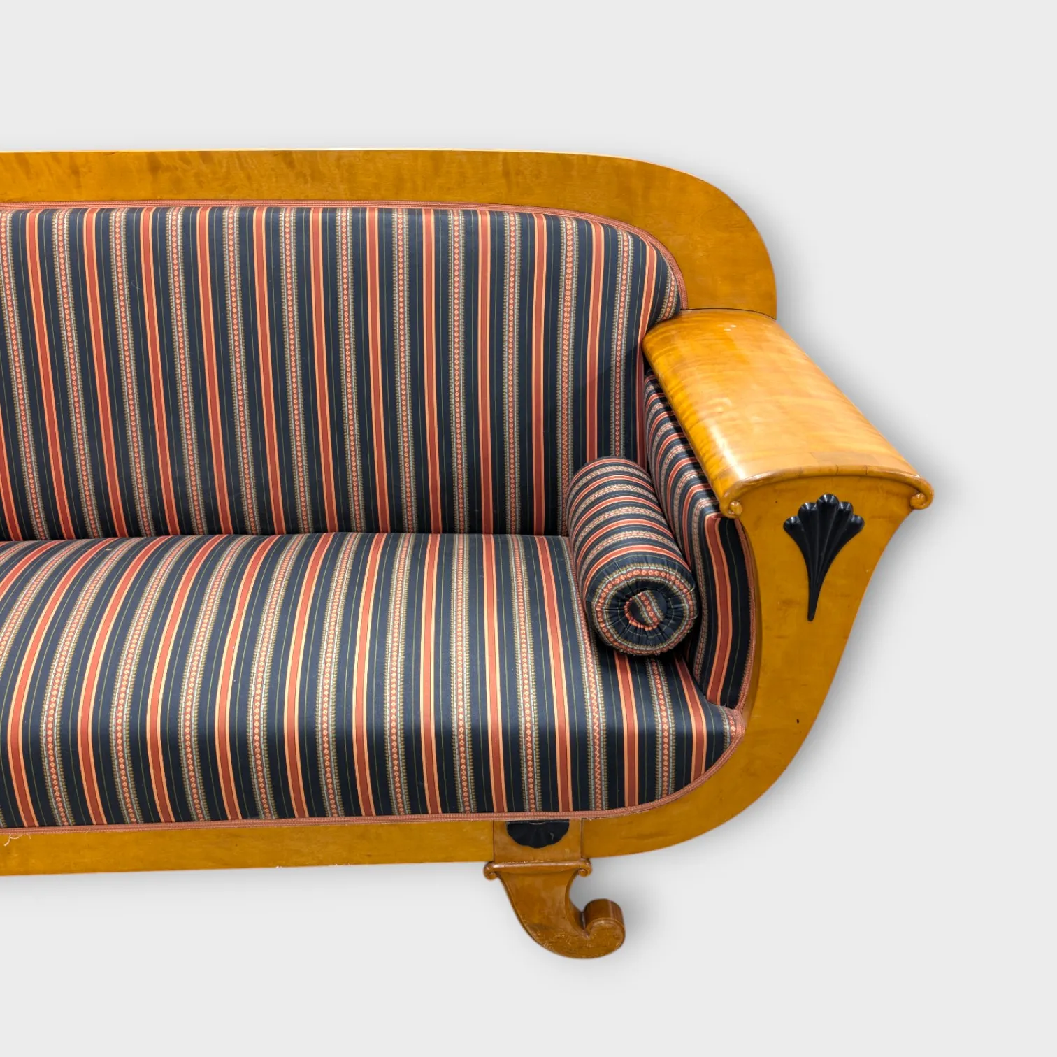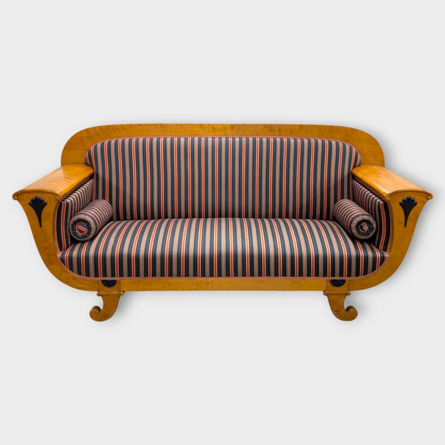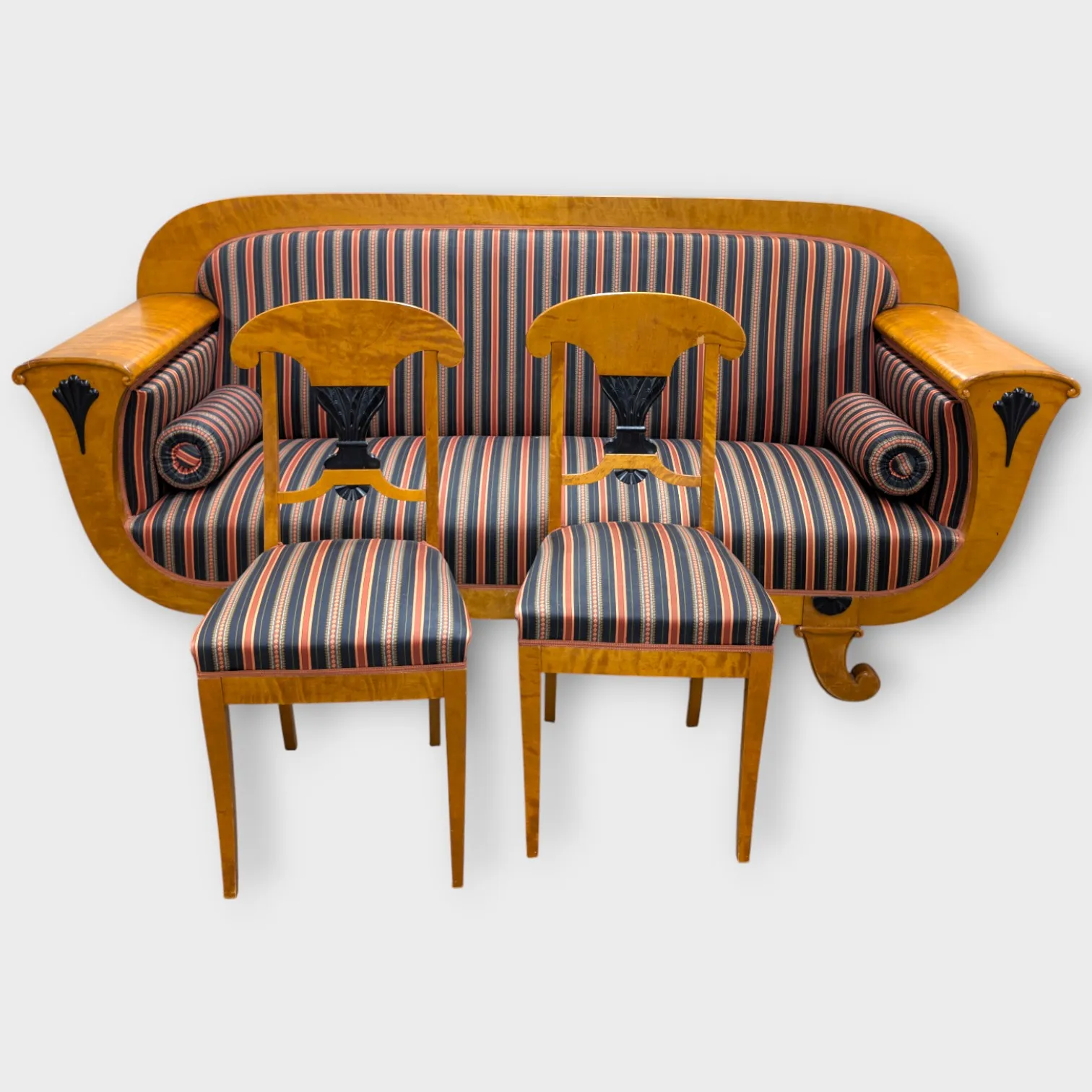 Soffa och 2 stolar, svängda armlän och ben, textilklädd sits, 1900-talets första hälft, bruksslitage