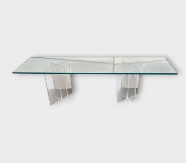 Soffbord med skiva av glas och underrede i akrylplast, 3 delar,