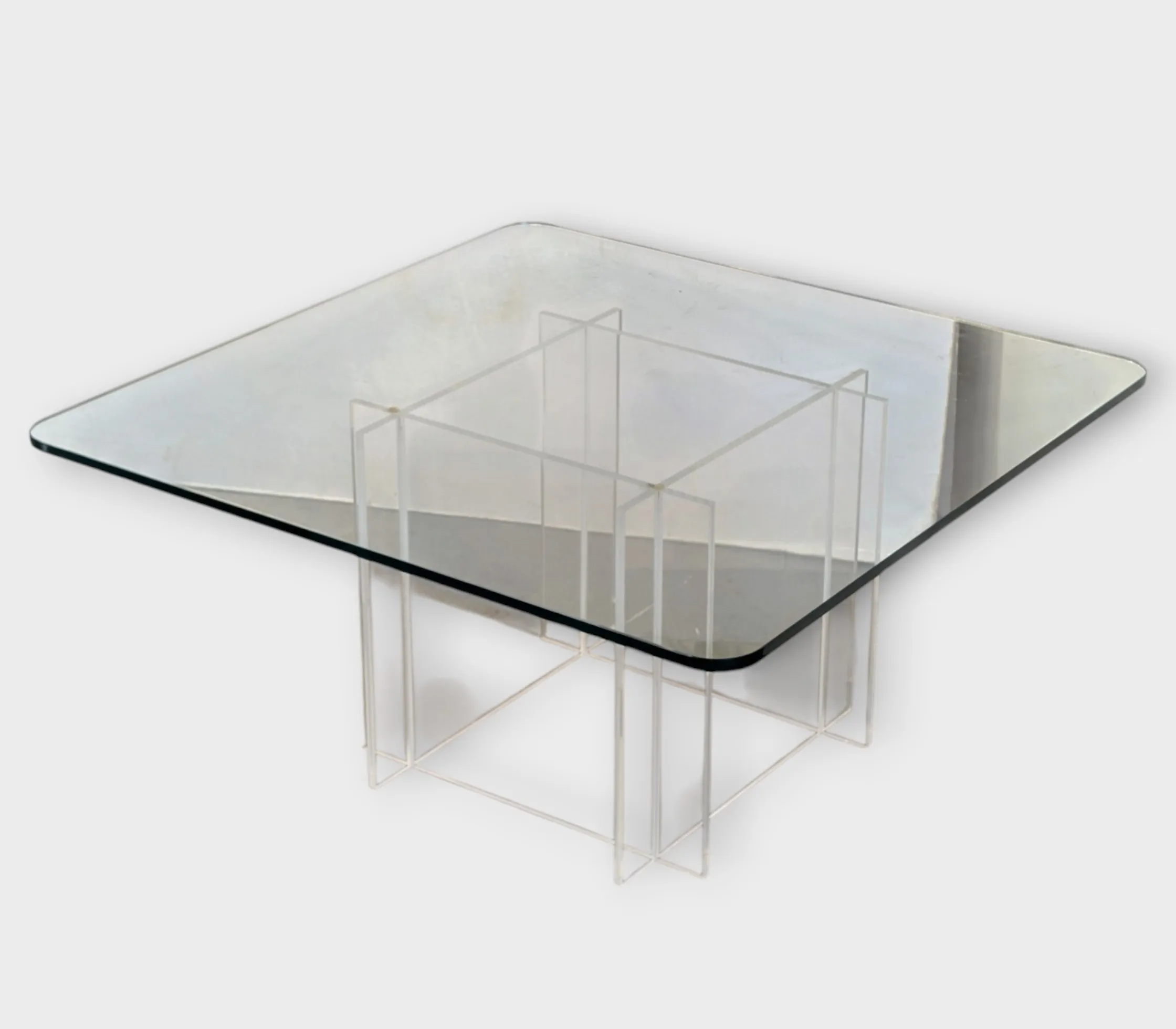 Soffbord med skiva av glas och underrede i akrylplast, 2 delar,