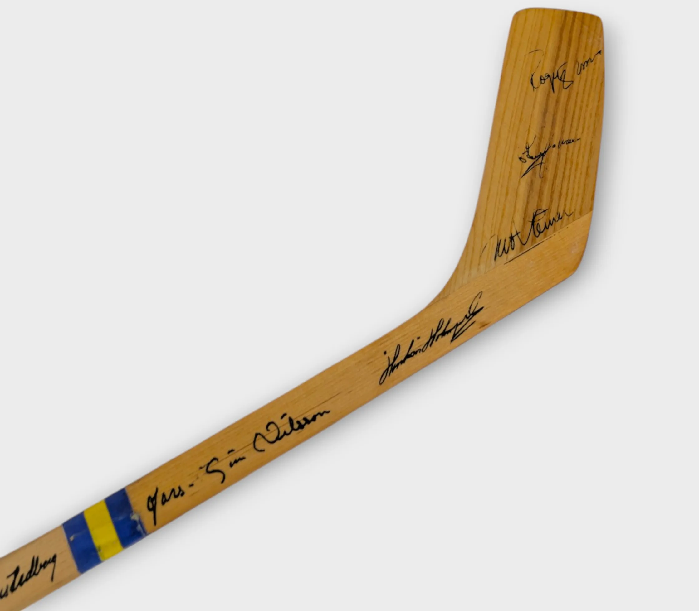 Hockeyklubba signerat av hela svenska landslaget 1970