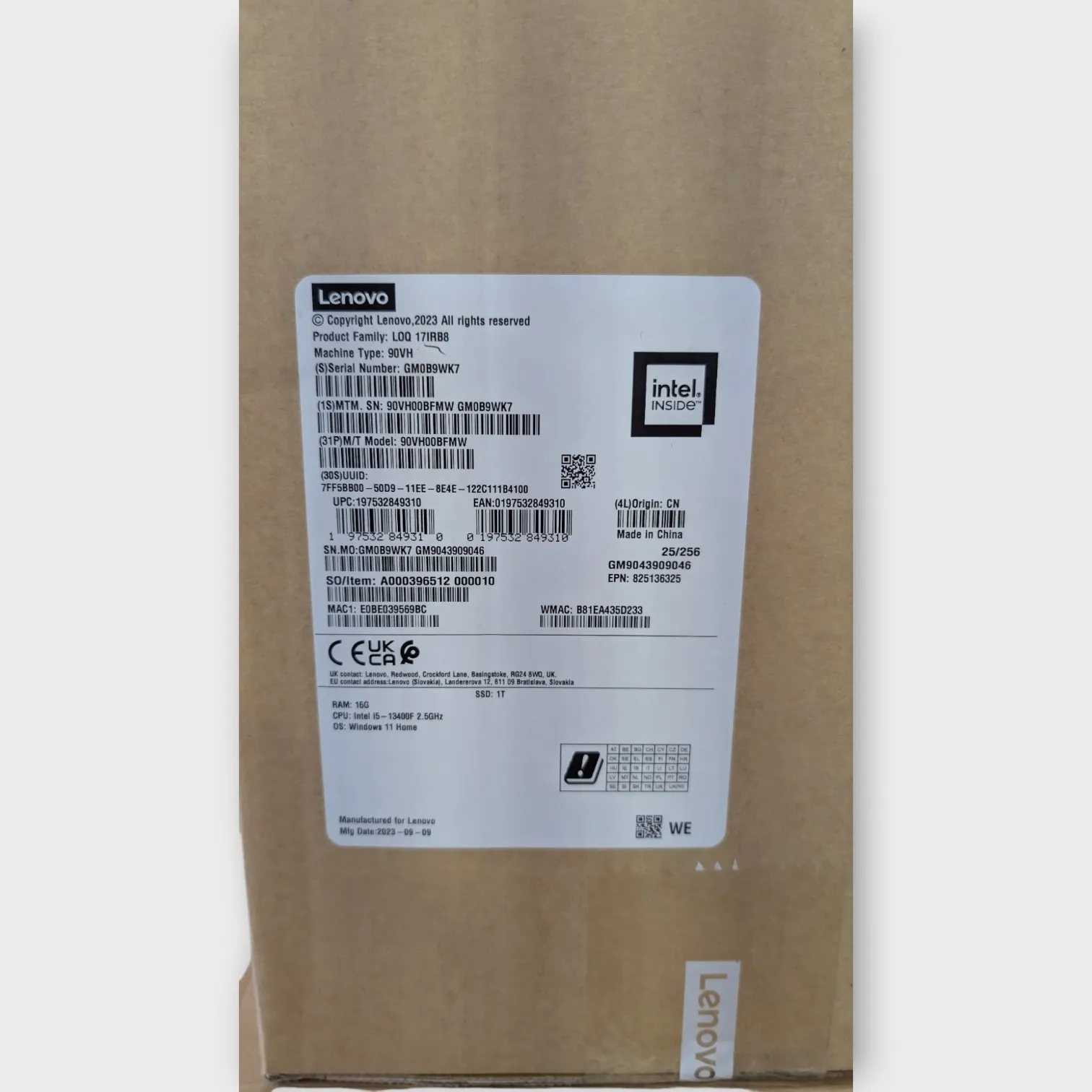Serienr : GMOB9WK7