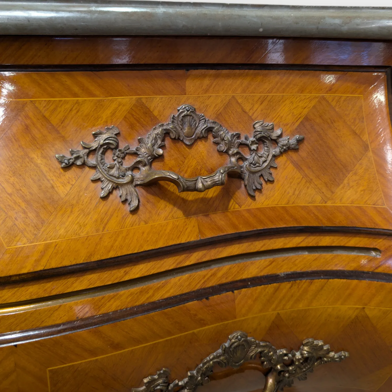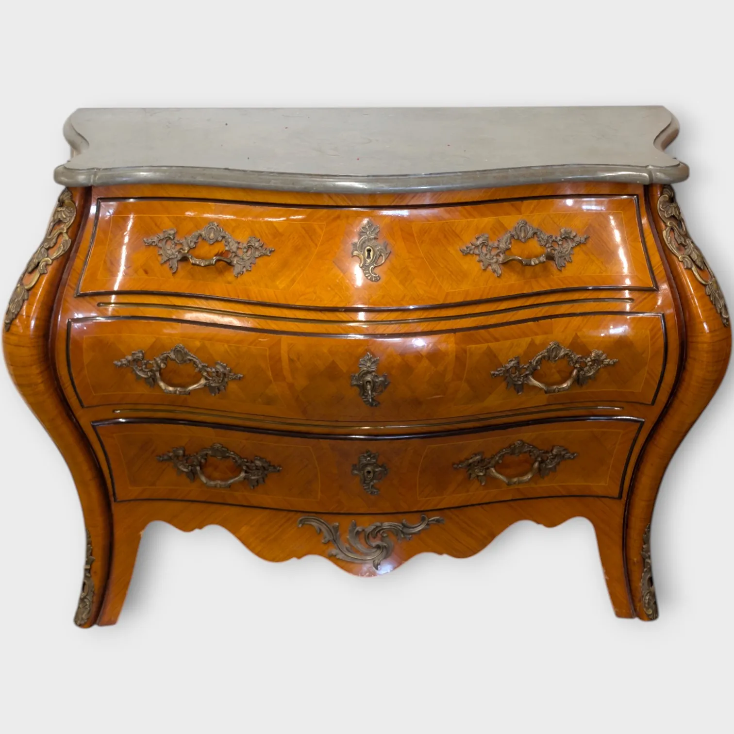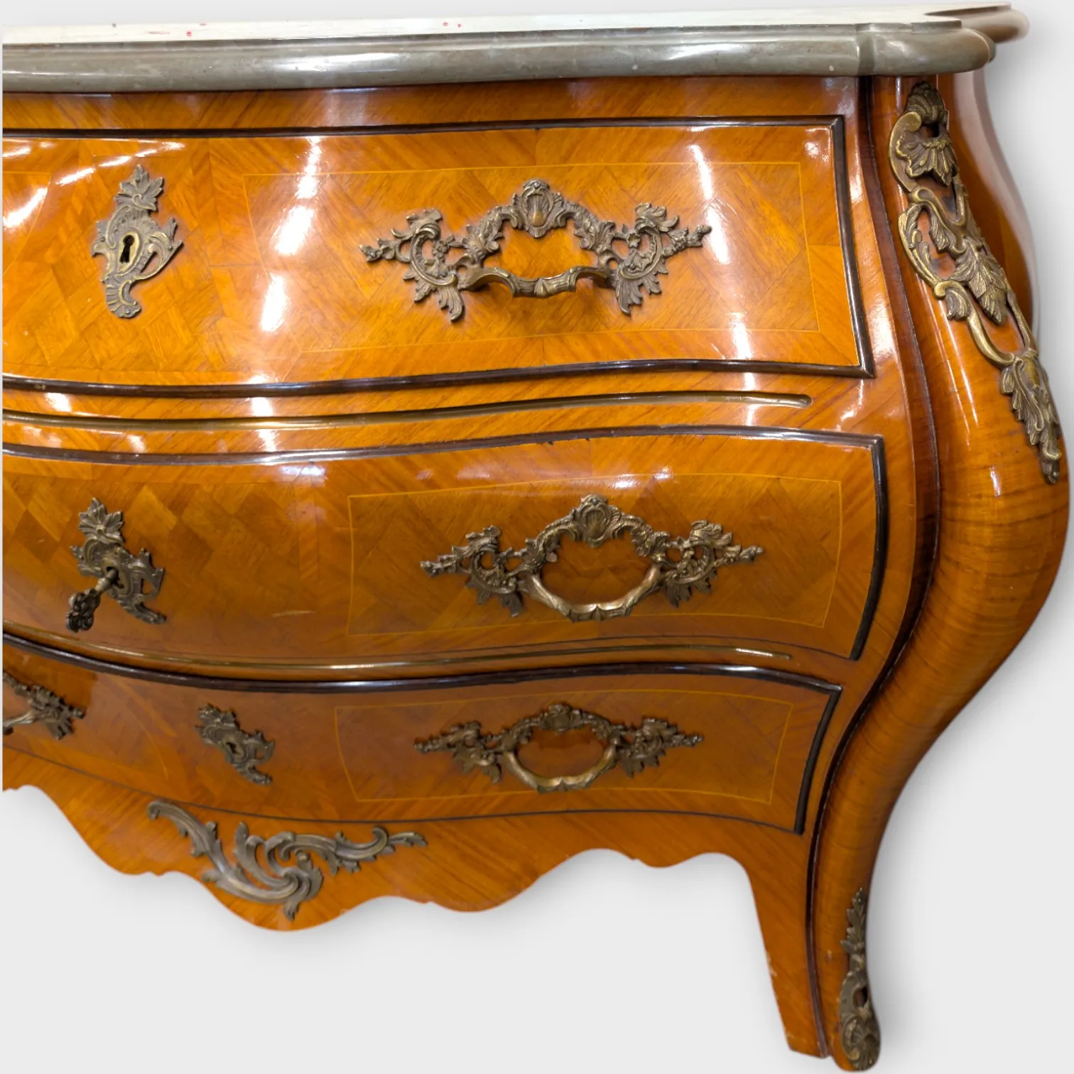 Stenplatta, 3 lådor, rokokostil, 1900-tal, lite fanerskadad vid bena