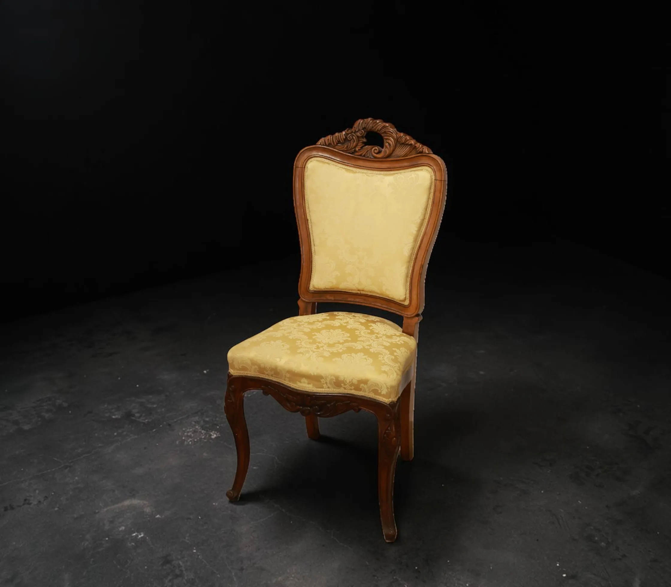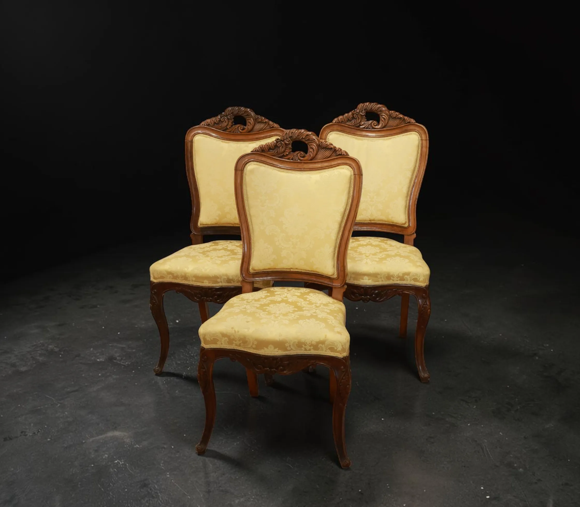 3 st stolar med sidenklädd sits och skuren dekor, rokokostil