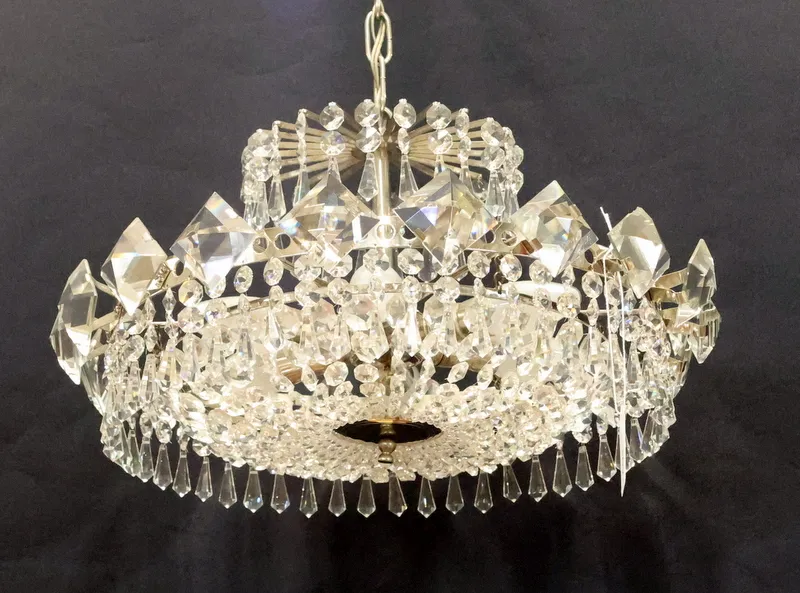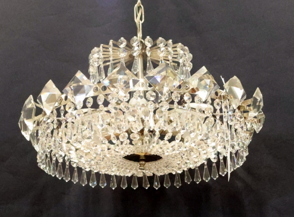 Stomme i vitmetall behängd med prismor, 6 ljuspunkter