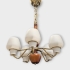 Swdish Modern ASEA, Svarvad bok med armar av mässing, kupor av opalglas, fem ljuspunkter