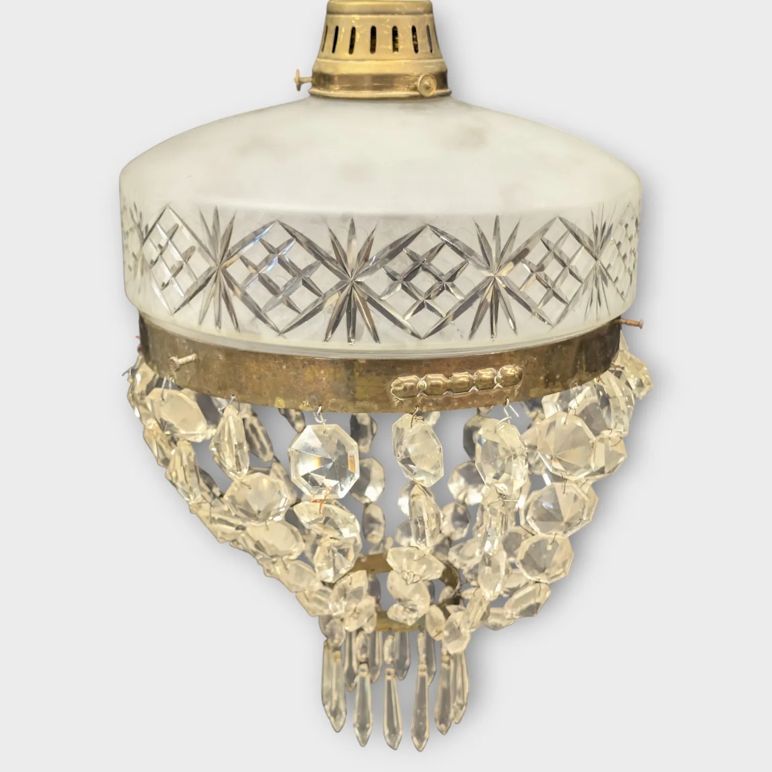 Ett par, 1900-talets första del, prismor och frostad glaskupa med dekorativa slipningar