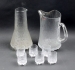 Två karaffer och sex snapsglas ur serien Ultima Thule, i design av Tapio Wirkkala för Iittala.Mått hänkelkaraff: Höjd 21 cm