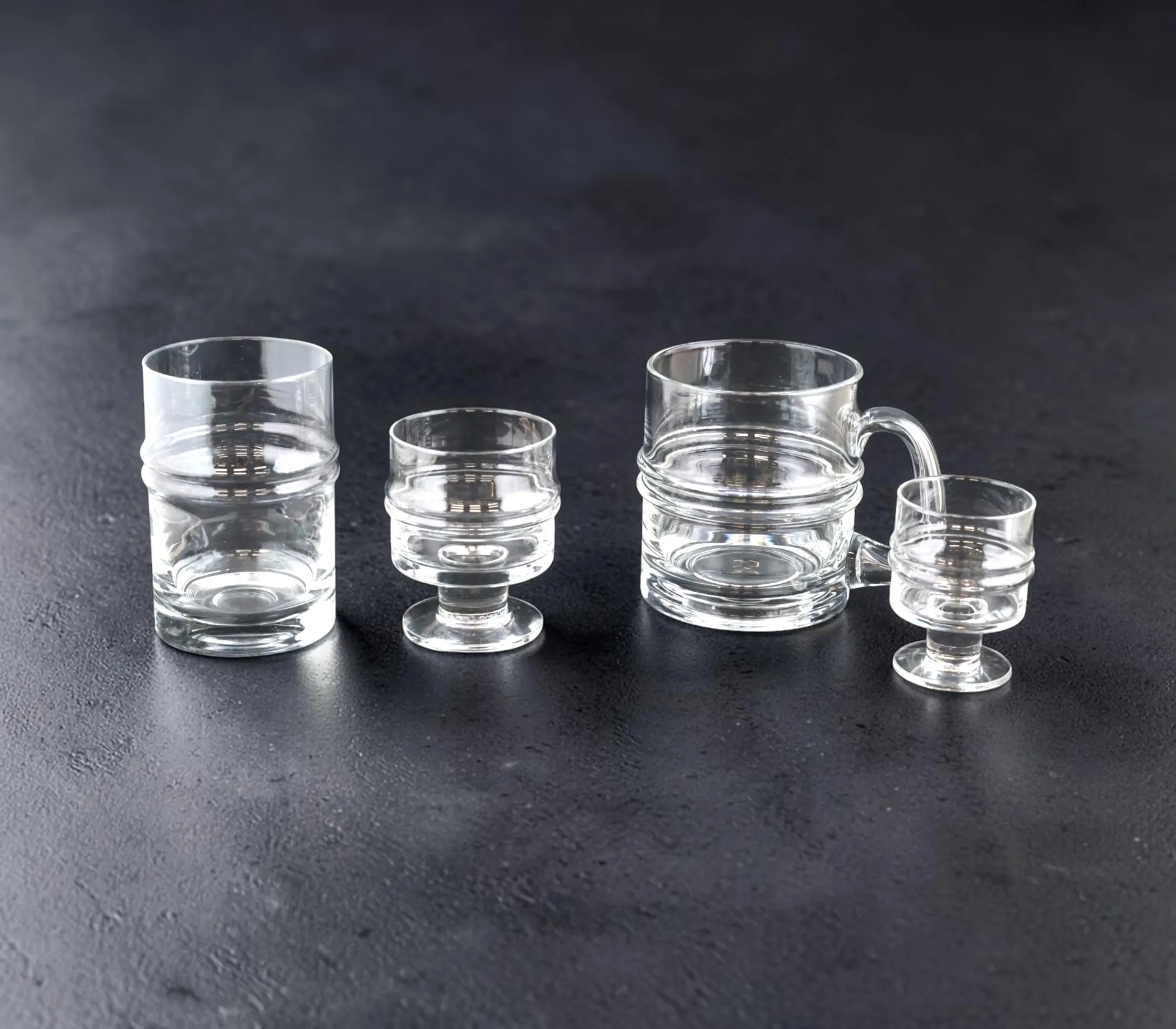 11 st ölsejdlar, 4 dricksglas, 12 likörglas, 10 snapsglas