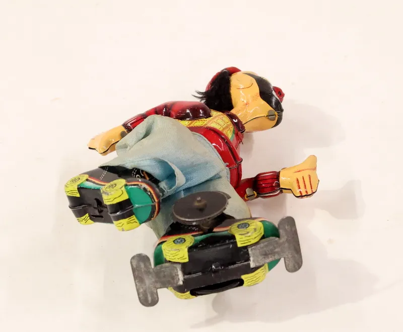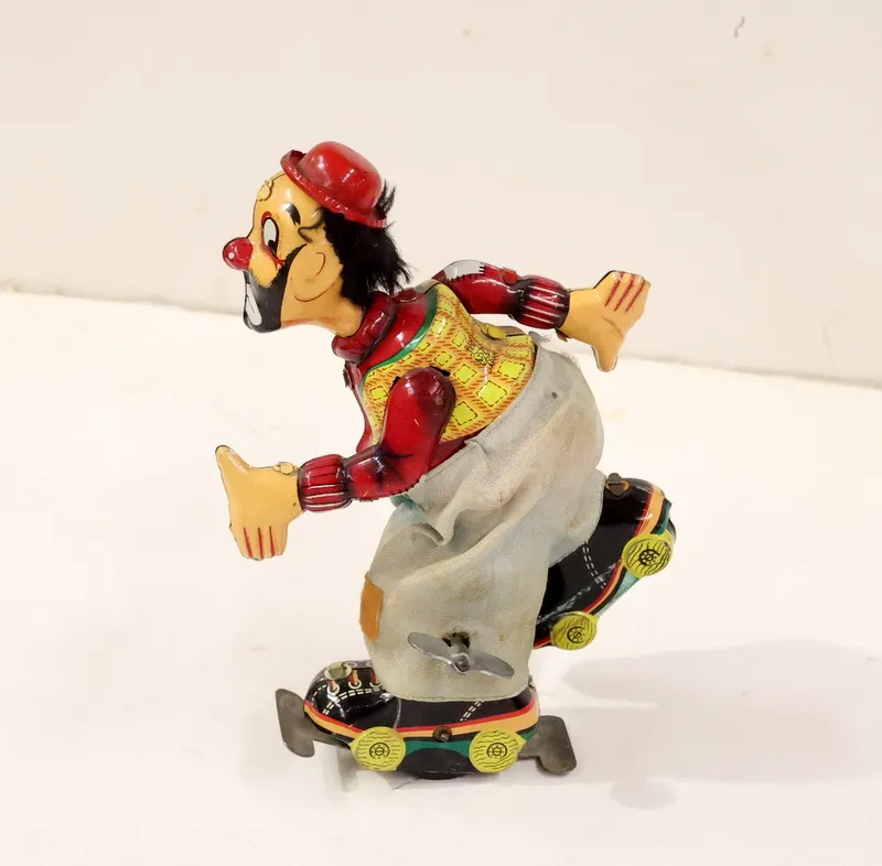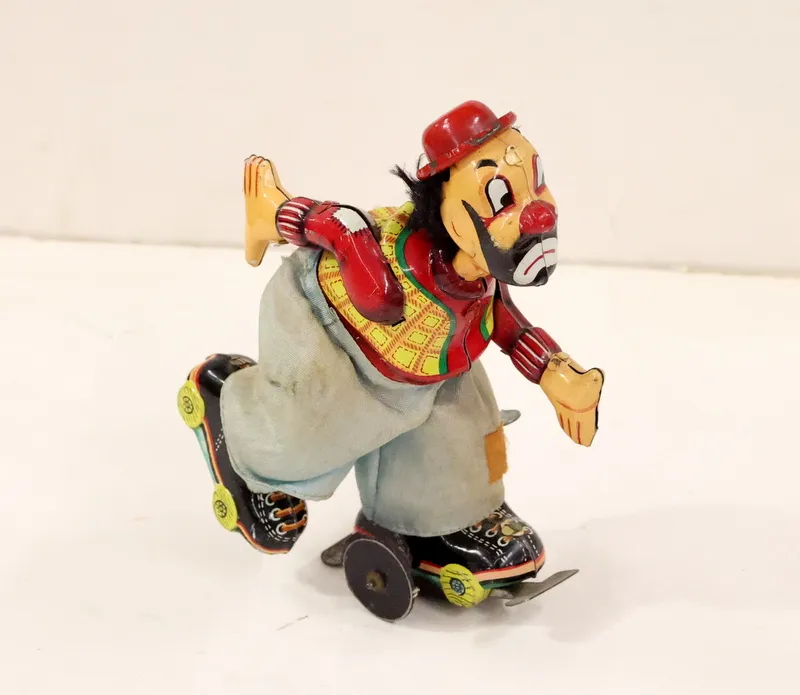 Rullskridskoråkande clown i plåt, Japan, 1950-tal