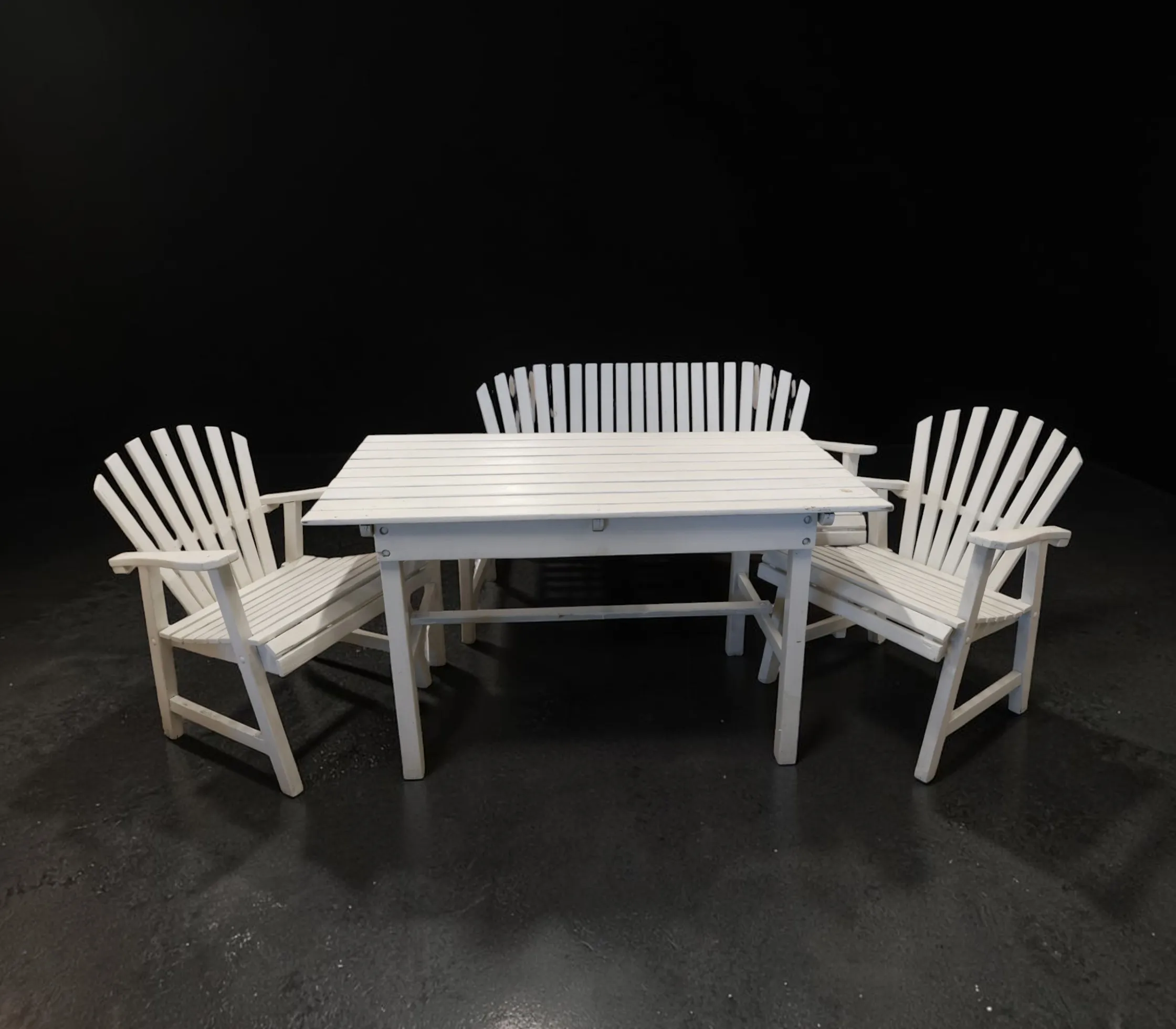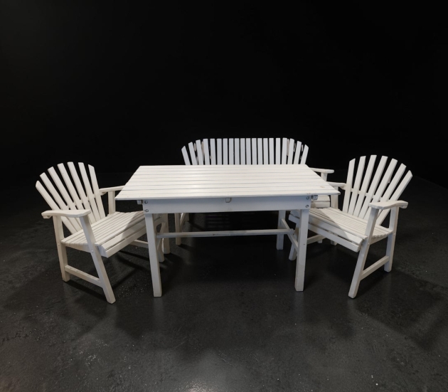 Bord med 2 fåtöljer och soffa, solfjädersmodell,