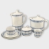 9 kaffekoppar med 10 fat, 10 assietter, 2 mindre assietter, kaffekanna, tekanna, sockerskål och 2 gräddkannor