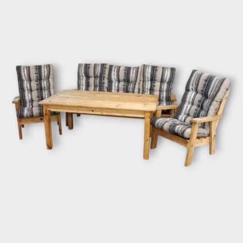 2 st fåtöljer, soffa och bord i trä, brukssltitage