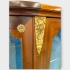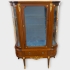 Vitrinskåp med 3 glashyllor, 1 låda och blå bakgrund, smidesbeslag, 1900-tal
